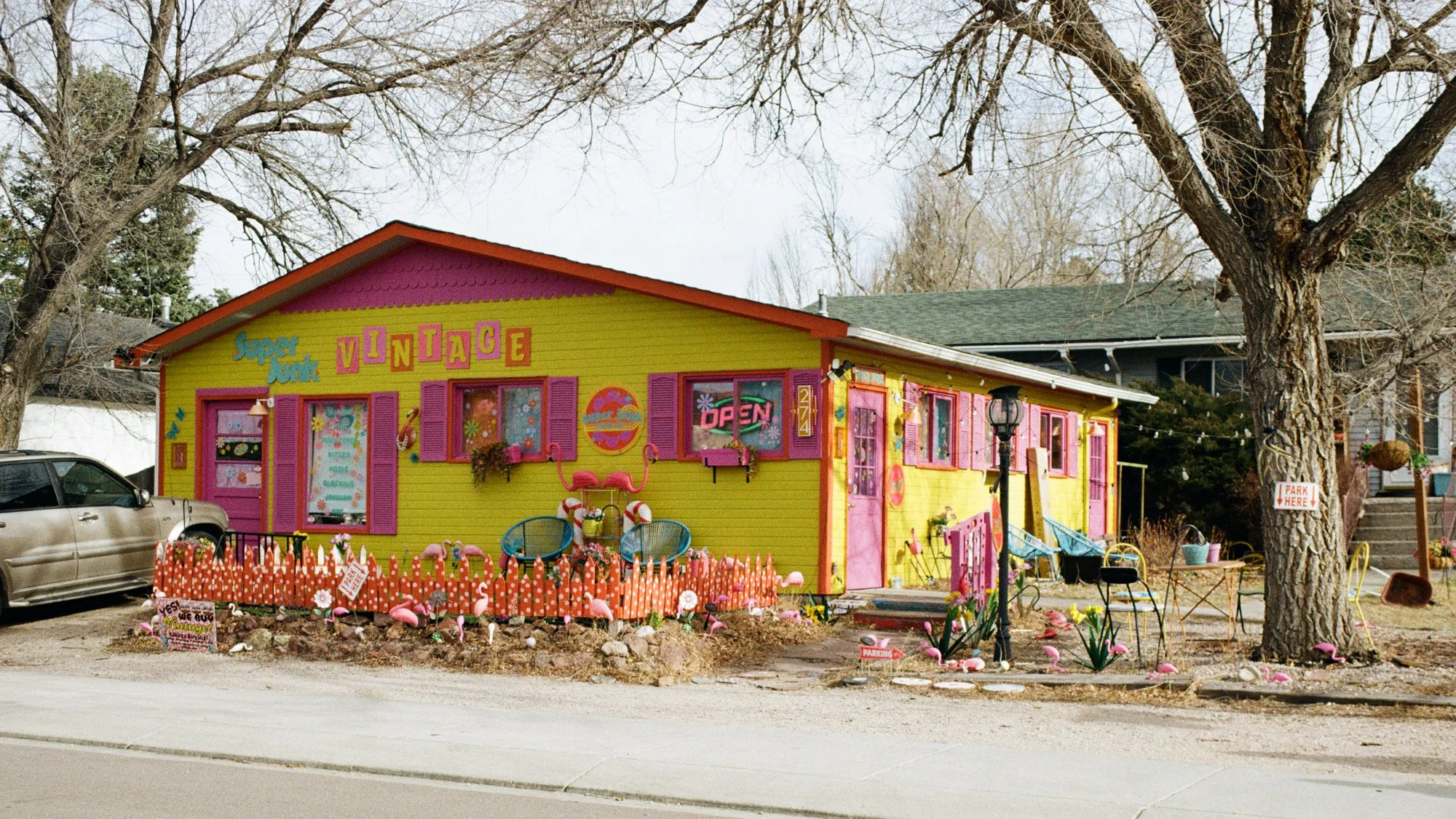 Before I took it to the San Marcos Film Lab, I had to use up the roll of film I had in the camera! Right next door to the lab is Old Soul, a retro clothing & stuff store. Inside was this poster, and I just took a shot of it, thinking it’d be a cool shot. Once it was developed, it became a favorite of mine; something about the framing, angle, the grain, and colors just grabs me with this photo.